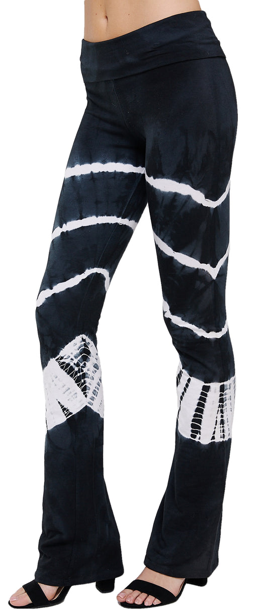 Flared Leg Tie Dye Print Yoga Pants for Women - Urban X Black and White Bamboo