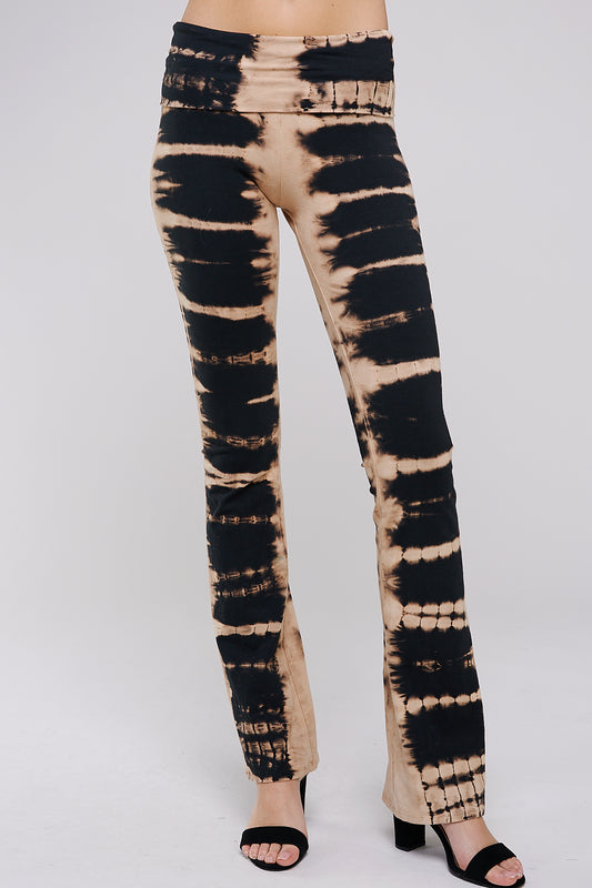 Fold Over Tie Dye Print Yoga Pants - Black and Mocha Skeletal Tie Dye