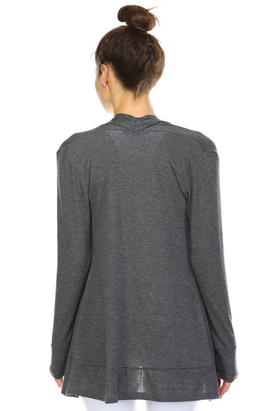 A-Line Solid Long Sleeve Hacci Knit Cardigan