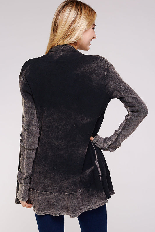 Black Maho Two Tone Mineral Tie Dye Long Sleeve A-Line Thermal Cardigan
