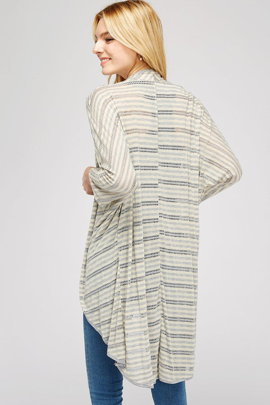 Grey & Beige Stripe Sheer Cardigan Wrap