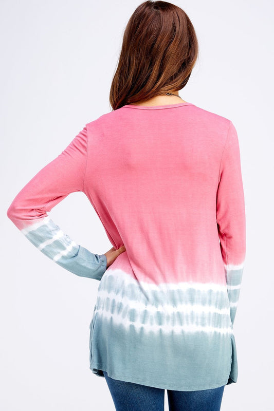 Ocean Blue Three Tone Ombre Tie Dye Long Sleeve A-line Cardigan/Shark Bite Hems