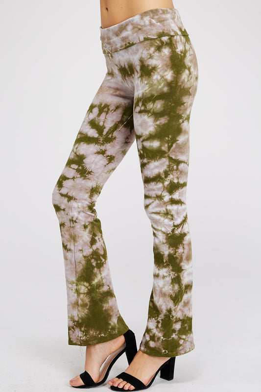 Two-Tone Mocha Mint Bamboo w/ Fold Over Band Tie-Dye Yoga Pants