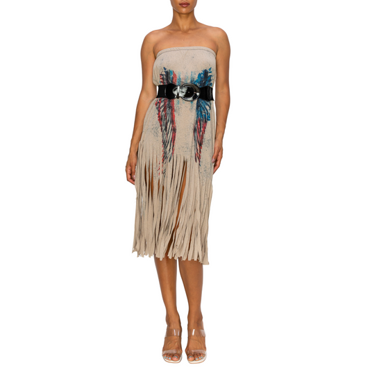 Sublimation Mocha Wing Print Fringe Skirt