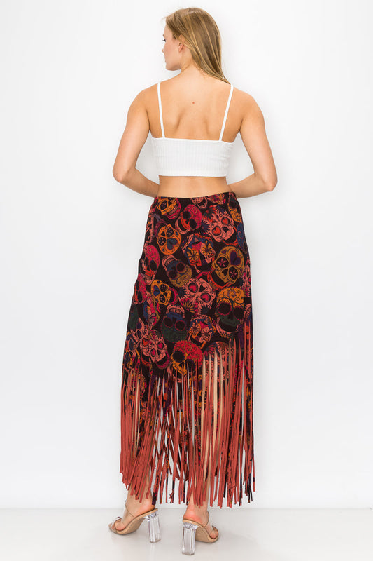 Asymmetric Skull Printed Women Fringe Skirt