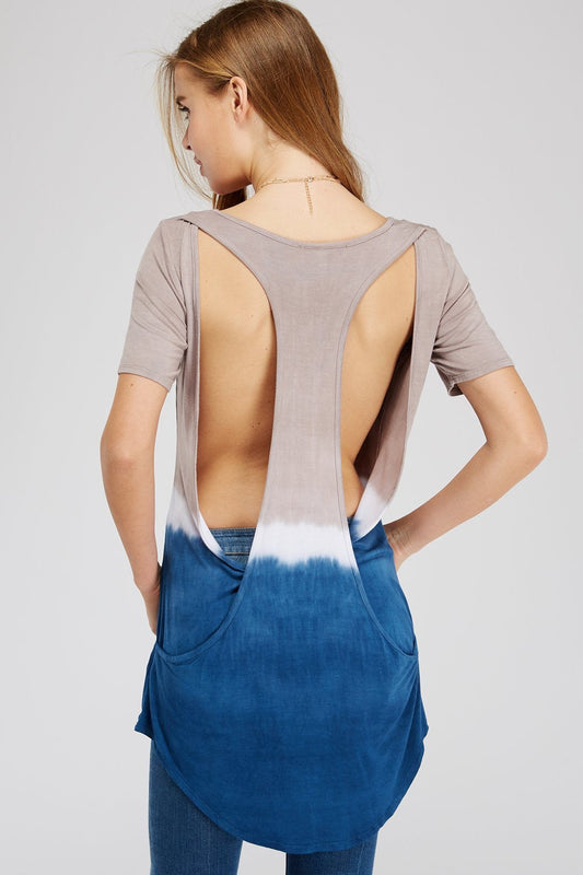 Women's Tie Dye Top - Navy & Mauve Two Tone Dip Dye