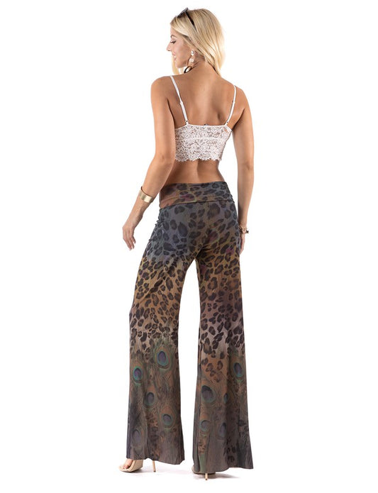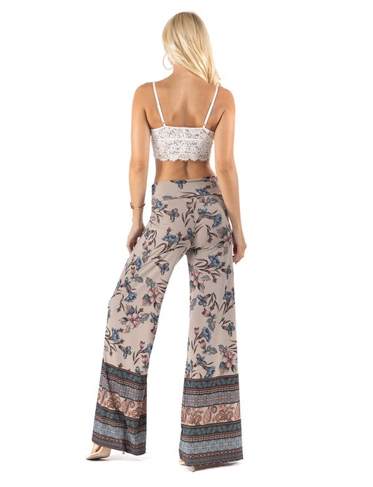 Brown Multi Floral High Waist Palazzo Pants with Wide Legs