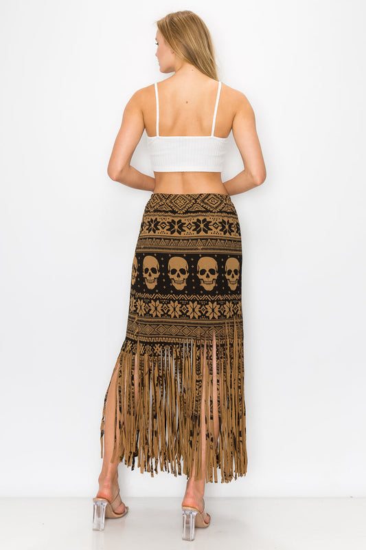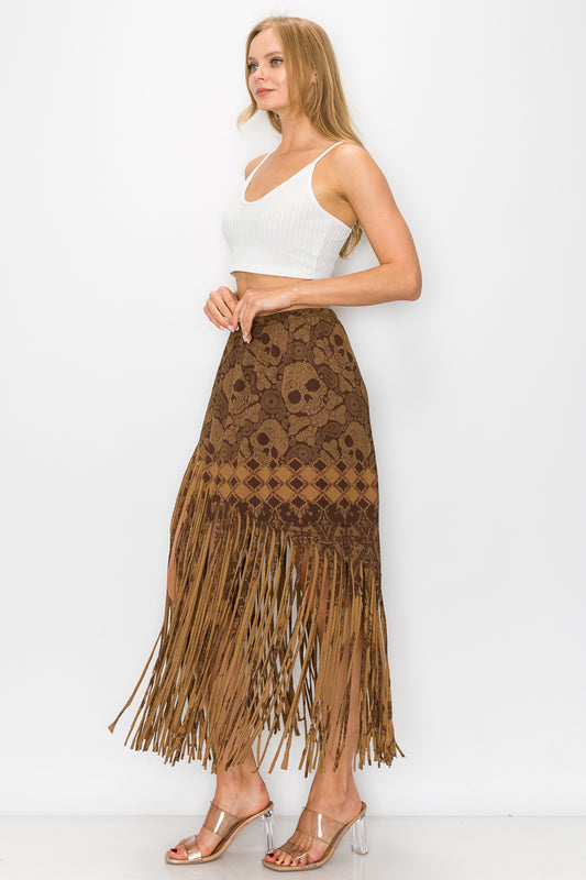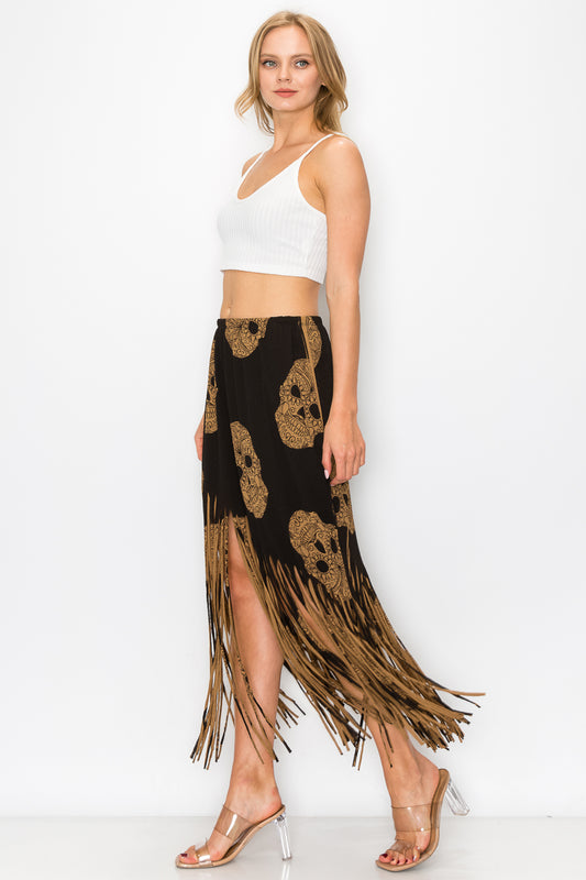 Asymmetric Skull Printed Fringe Ladies Skirt