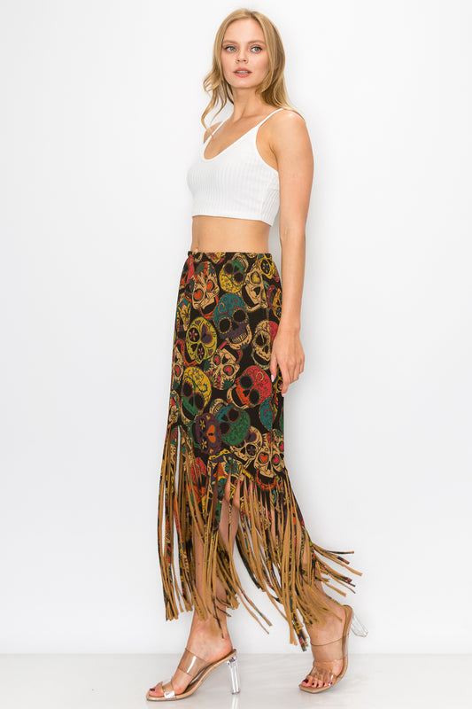 Sublimation Sugar Skull Printed Fringe Skirt for Women