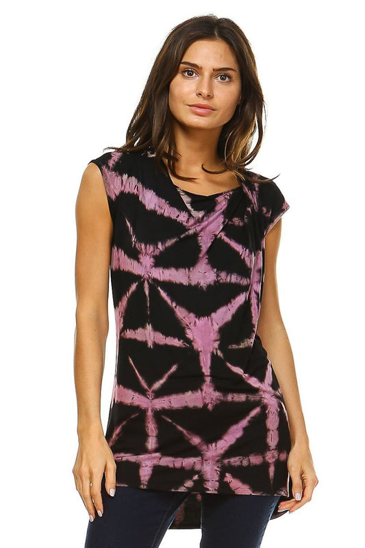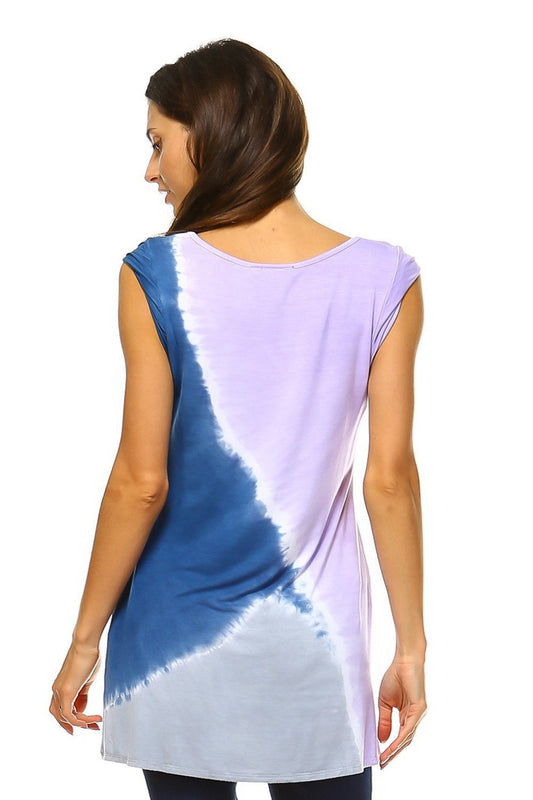 Women's Tunic Tops - Lilac & Navy Color Block Tie Dye Short Sleeve