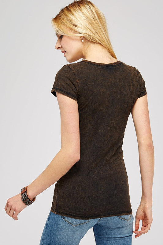 Rusty Brown Mineral Washed Short Sleeve V-Neck Graphic Tee