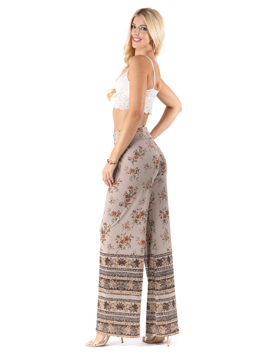 Pink Orange Floral Damask Design High Waist Palazzo Pants