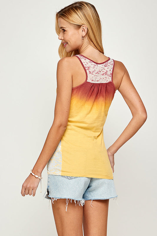 Women Tank Top -Urban X Sunset Yellow Ombre Dye Tank top with Burnout contrast and drawstring