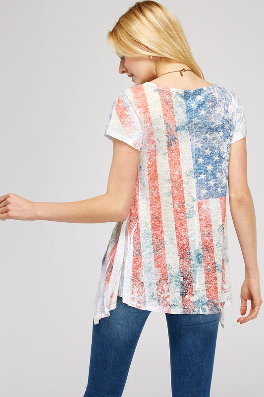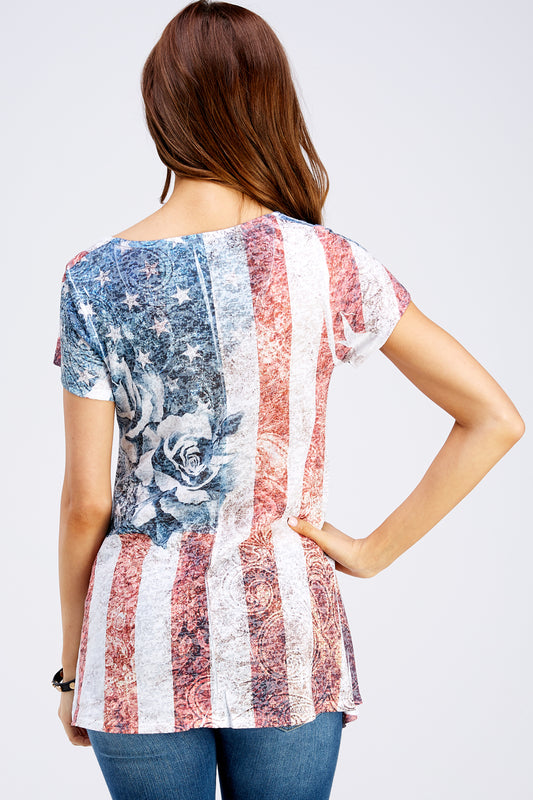 Navy Blue Sublimated American Flag Star Graphic Tunic Top