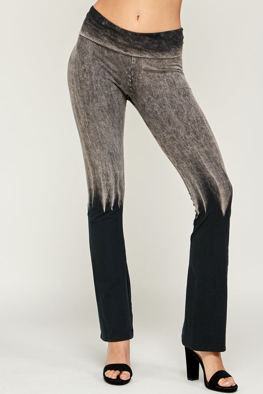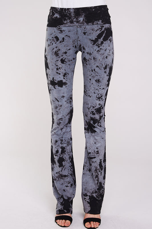 Tie Dye Yoga Pants for Ladies - Two Tone Cloud with Fold Over Band