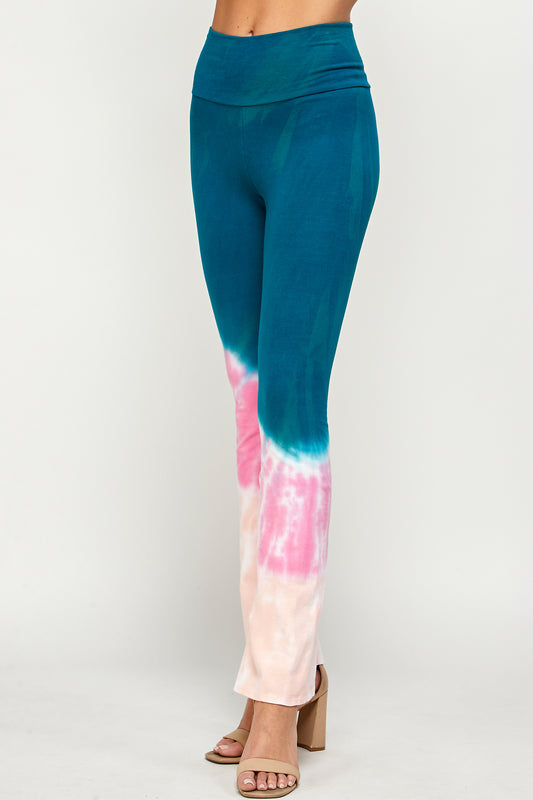 Yoga Pant Women Leggings - Tie Dye Fold Waistband Pants