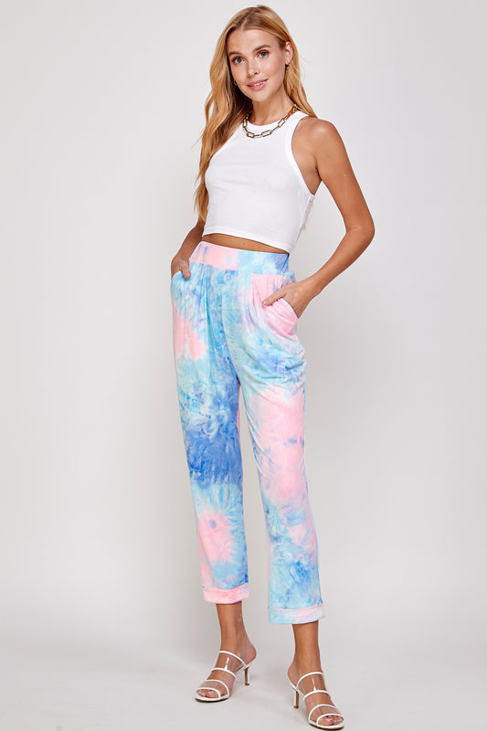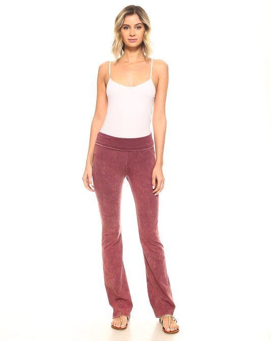 Mineral Wash Yoga Pants - Women's Casual Fold Over Waistband Flared Leg