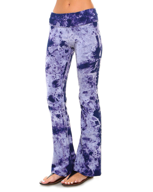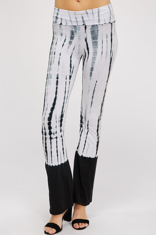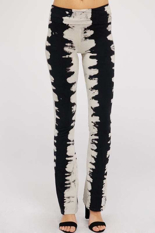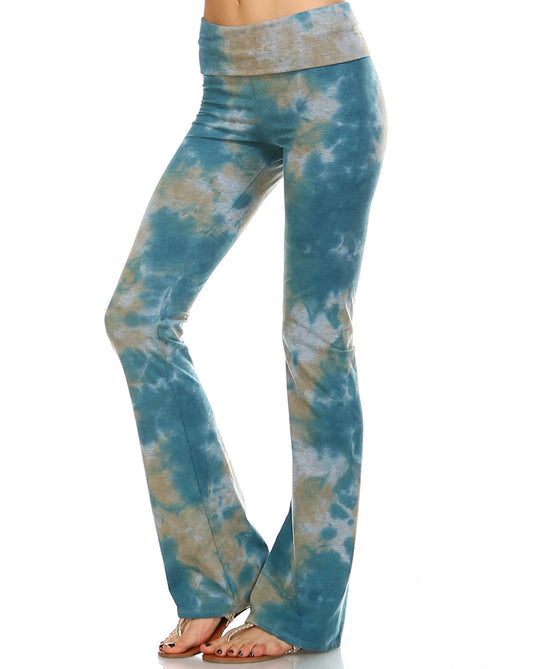 Two-Tone Mocha Mint Bamboo w/ Fold Over Band Tie-Dye Yoga Pants